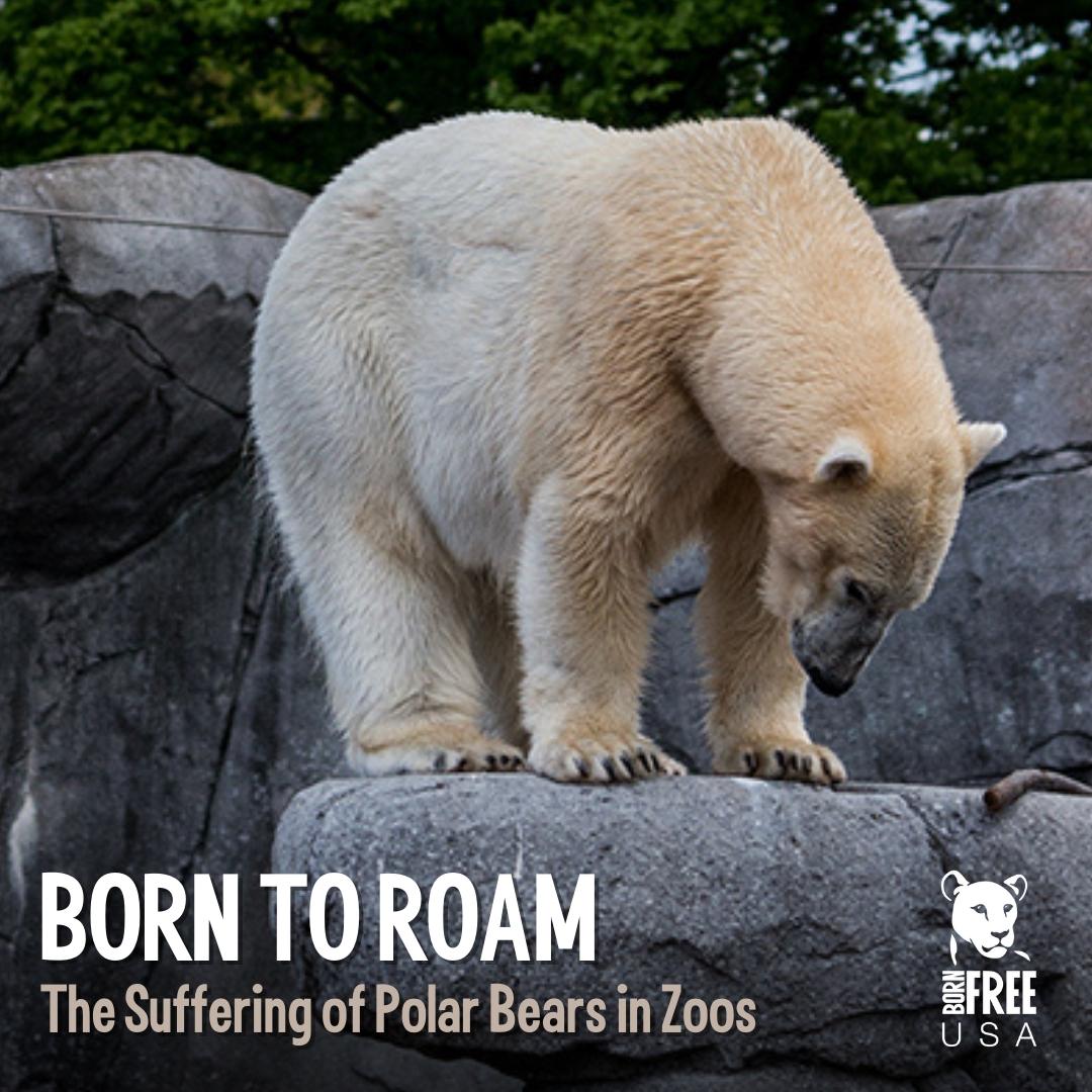 In the wild, #PolarBears travel far distances ranging tens of thousands of miles. Yet, hundreds of polar bears are held in cruel captivity in #zoos, forced to live in a tiny fraction of their natural range. Learn more in @BornFreeUSA’s report, #BornToRoam! bit.ly/polarbearsborntoroam