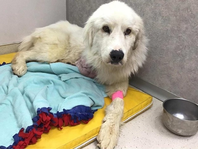 In early 2020, Maggie, a Great Pyrenees puppy, had the misfortune of being caught in a leg-hold trap in Tennessee.