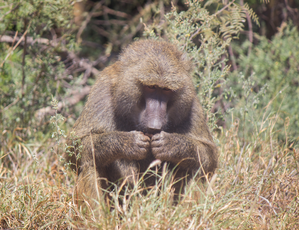 In 2012, we constructed a large one-acre enclosure for nine female baboons who were retired from research. After they acclimated to their new surroundings and worked out their hierarchy, we introduced Buddy and Elvis to the girls. Both young males were readily accepted and their confidence grew even more in a short period of time.