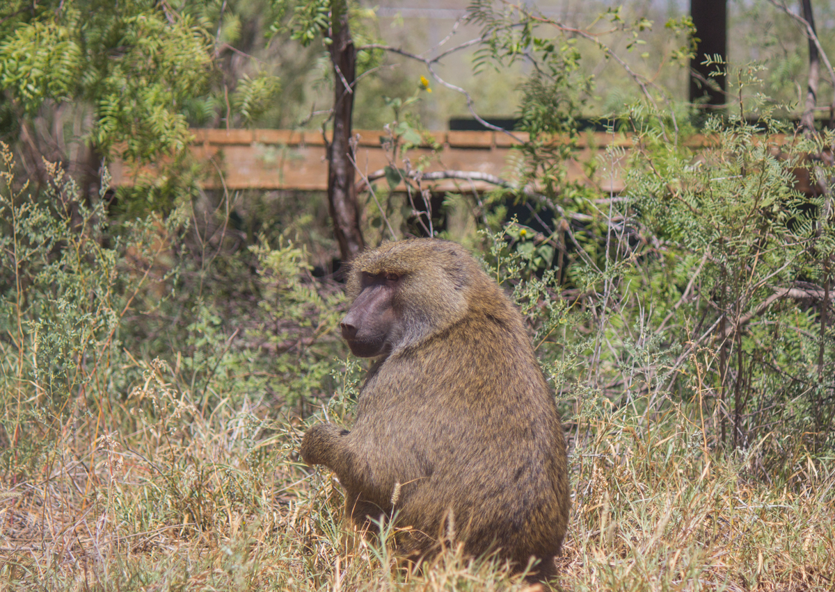 Just a few months earlier, we had taken in Elvis, a six-month-old traumatized baboon, who desperately needed a friend to grow up with. It took a few weeks for them to completely settle in with one another, but once they did, they became inseparable. Their self-confidence and maturation have been wonderful to witness. Elvis’ outbursts became shorter and less frequent, and Buddy now had someone to be with 24 hours per day instead of being isolated in a small cage.