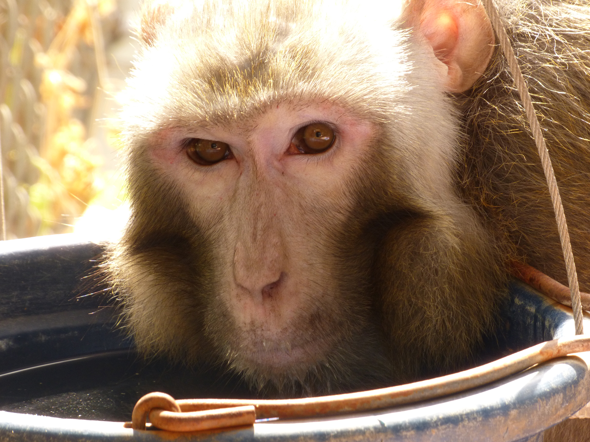 Dawkins arrived at the Primate Sanctuary in May 2018. Like Creed and Oscar, who also arrived in May 2018, Dawkins was retired from research and into our care. On the day of his arrival at the Sanctuary, Dawkins created a stir at the San Antonio Airport when he escaped from his transport crate, demonstrating the inherent unpredictability of keeping primates in captivity.