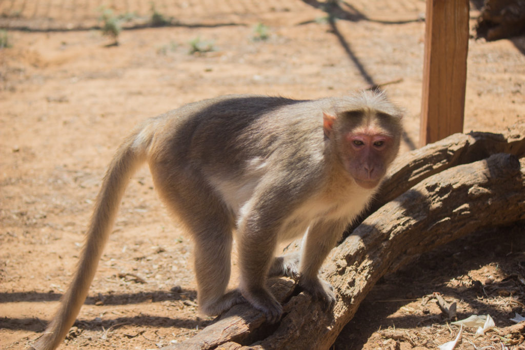Mig is a young female bonnet macaque who arrived with her mother and father at the sanctuary in August 2006, as part of a group of bonnet macaques retired from a research laboratory. All the bonnets were born in captivity and had spent their entire lives under laboratory conditions, having been used either for breeding or various behavioral research projects before being retired.
