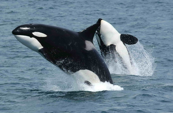 The black and white orca is the largest member of the dolphin family. Orcas are also one of the ocean’s fastest mammals and can reach speeds of 35 mph.