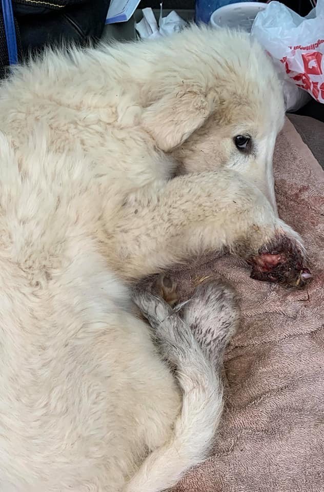 In early 2020, Maggie, a Great Pyrenees puppy, had the misfortune of being caught in a leg-hold trap in Tennessee.