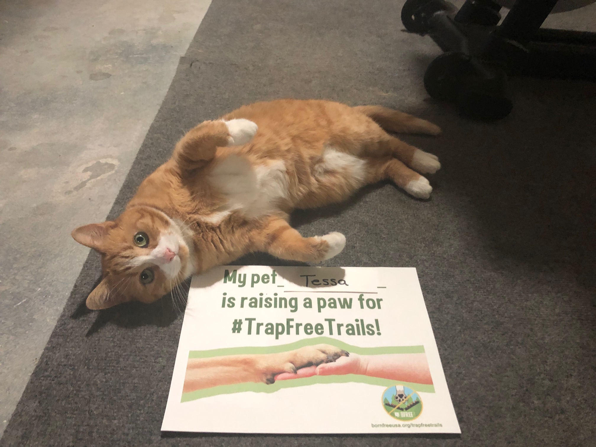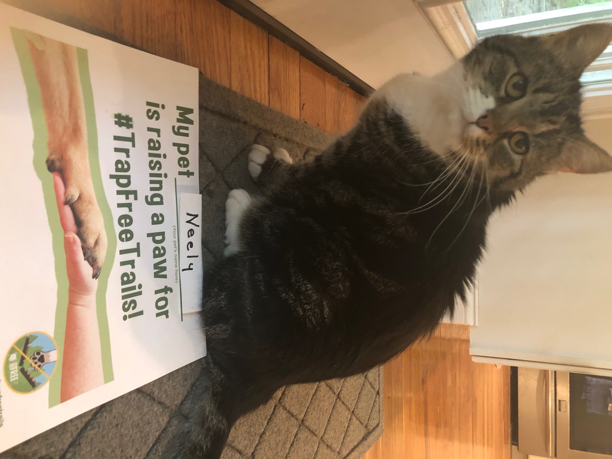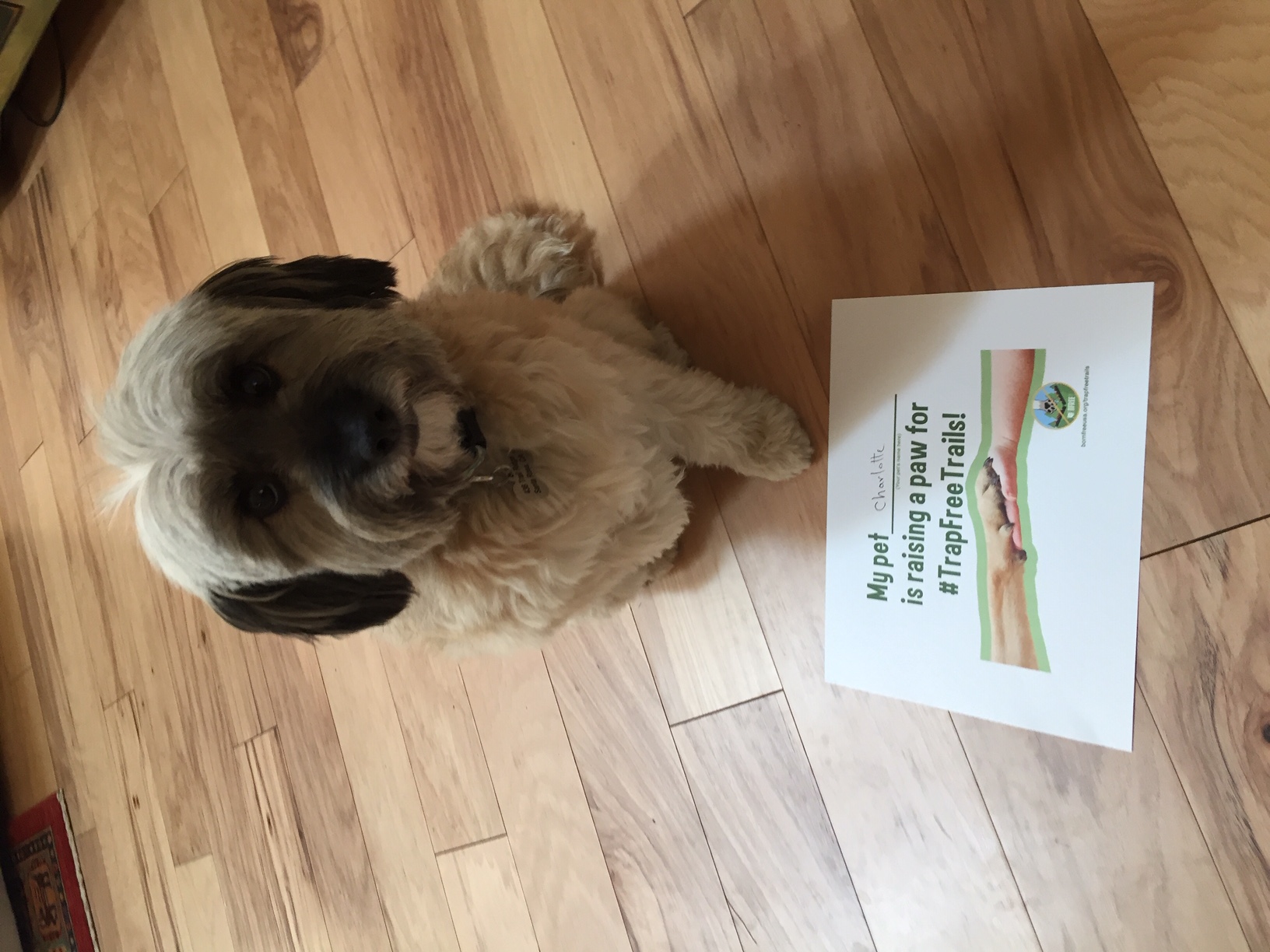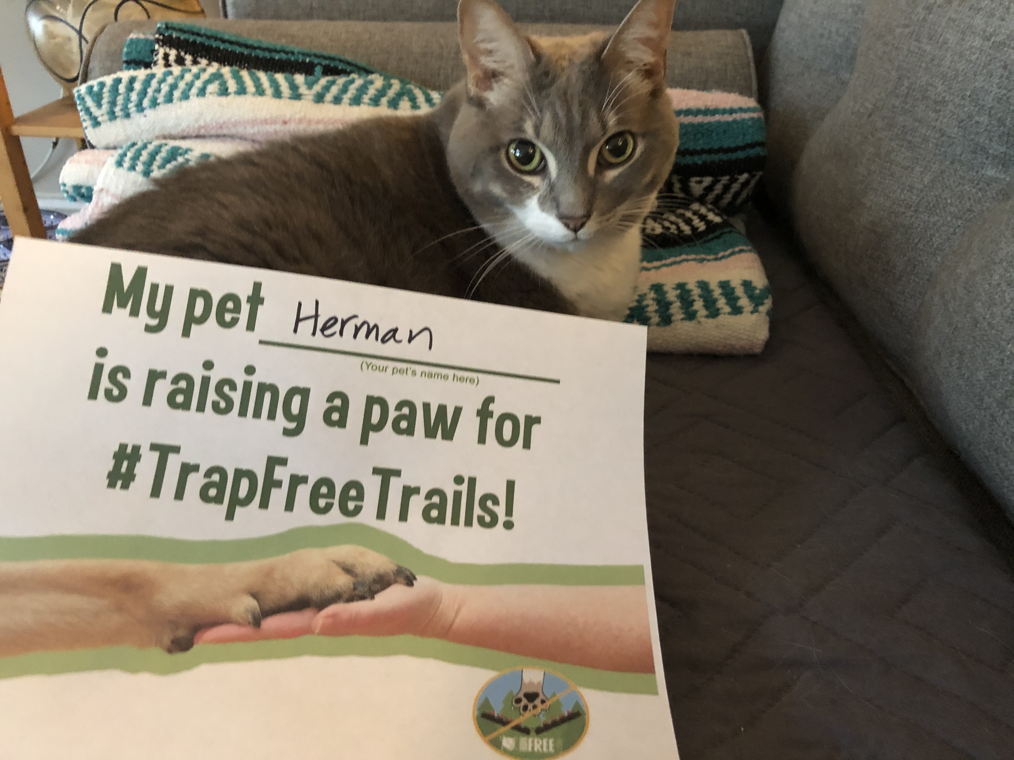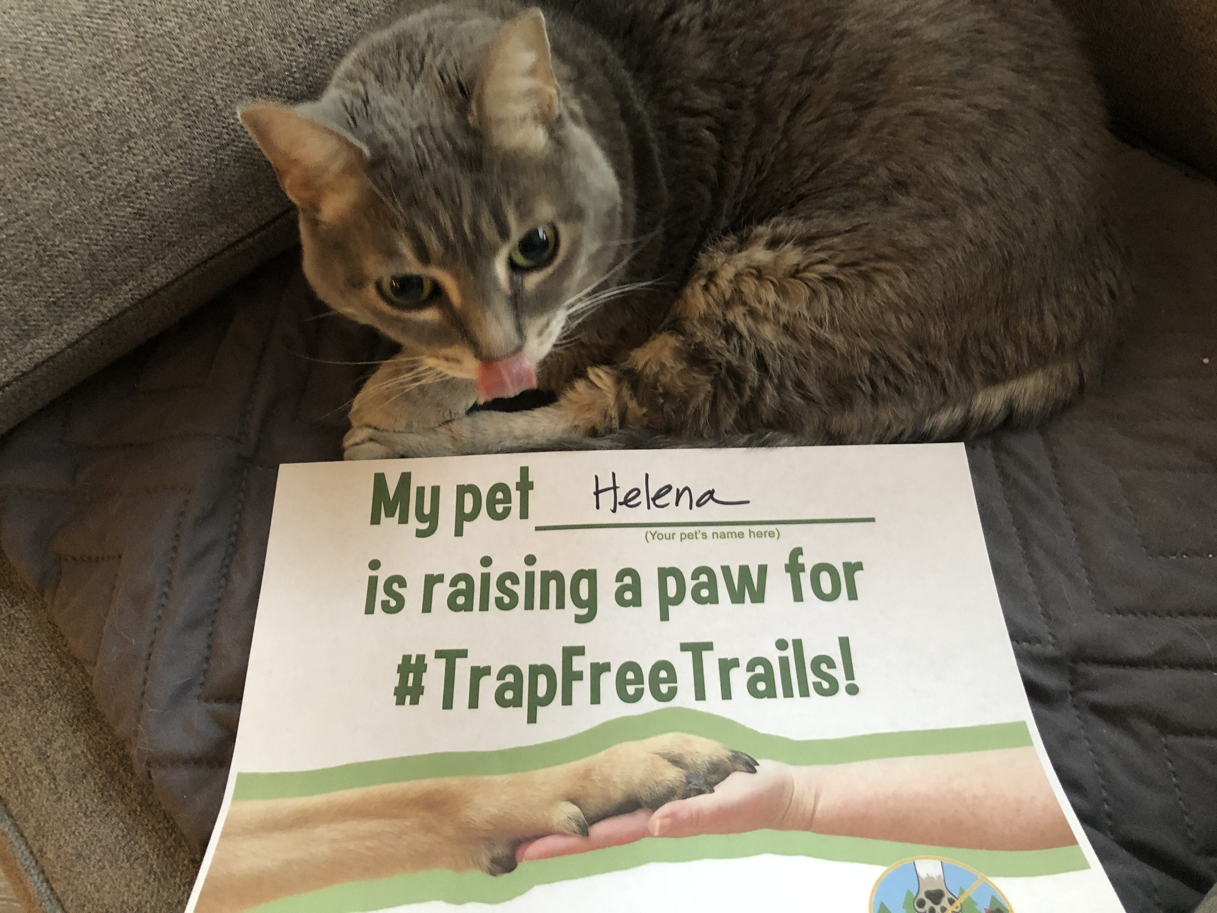 1. Print out the “Raise a Paw for #TrapFreeTrails” sign (PDF).
