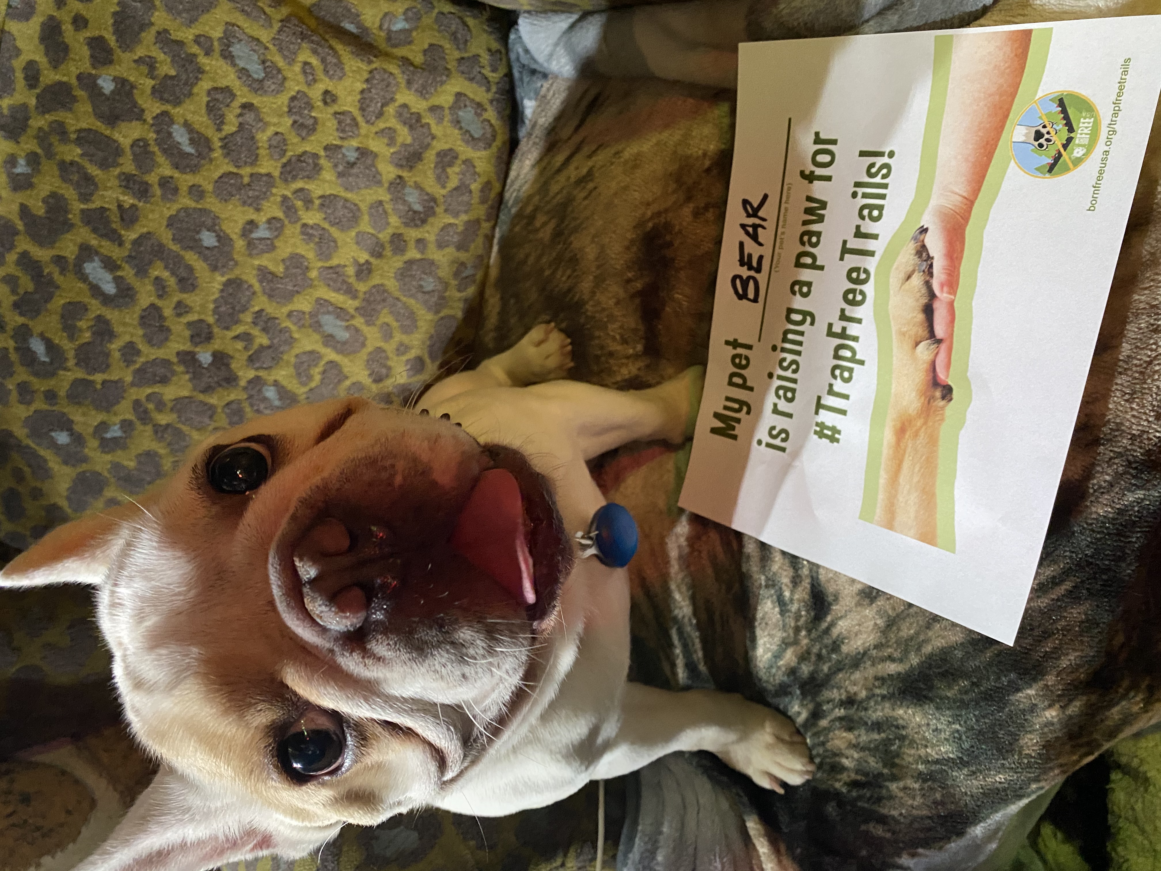 5. You can also post your #RaiseAPaw pet photo directly on social media. Be sure to tag Born Free USA (Twitter: @bornfreeusa / Facebook: @bornfreeusa / Instagram: @bornfreeusaorg) and use campaign hashtags #TrapFreeTrails and #RaiseAPaw.